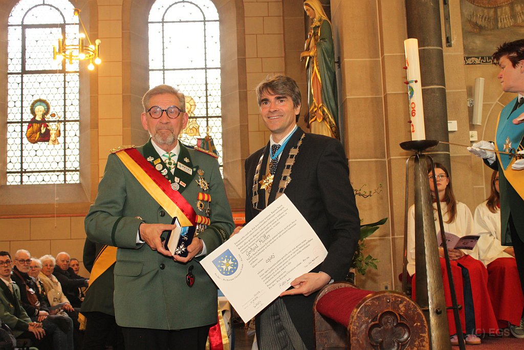 Am Freitag, dem 10. April, wurde in einem feierlichen Gottesdienst und der Investitur Gerd Müller in die 1985 gegründete Ritterschaft, vom Heiligen Sebastian in Europa, der Europäischen Gemeinschaft historischer Schützen (EGS) aufgenommen.