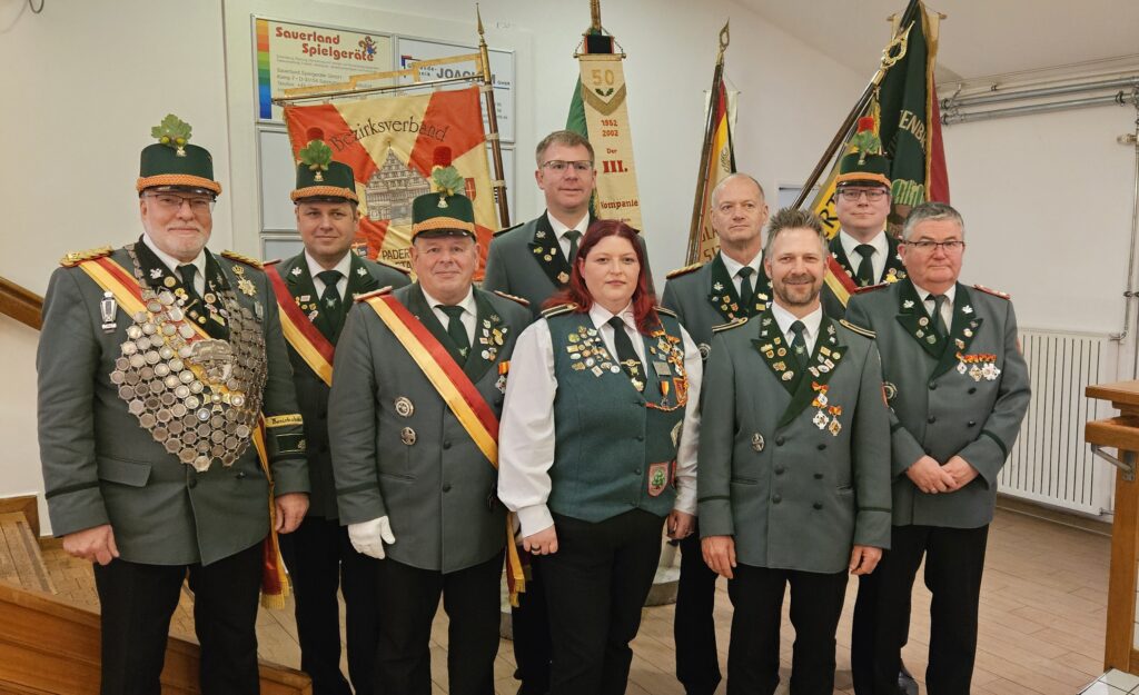 Am Samstag, den 07.03.2026 fand wieder die Generalversammlung der Elsener St. Hubertus-Schützenbruderschaft im Bürgerhaus Elsen statt. Neben den einzelnen Berichten , der Neuwahlen zum Battaillonsvorstand stand auch wieder die Ehrung der langjährigen Mitglieder auf der Tagesordung. Folgende Mitglieder der 3. Kompanie wurden für 25, 40, 50 Jahre Mitgliedschaft geehrt: